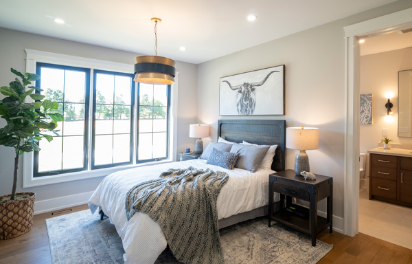 Terry and Paul were conscious of enlisting local talent as much as possible. Michaela’s Homes & Interiors of Acton was responsible for the choice of paint colours, flooring and light fixtures. K.C. Design Group of Orangeville sourced the furniture, bedding, artwork and accessories. Future Painting in Orangeville completed the painting of the entire house.