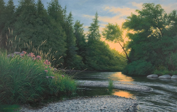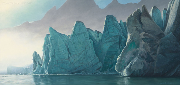 Two years later he headed north – way north! Starting in 2006, Into The Arctic Project: An Artist’s Journey to the North, became a multi-year painting project. This consisted of three extensive Arctic painting/filming expeditions, where he also made significant relationships with the Inuit and their age old-wisdom. I remember him talking about having a gun with him for protection in case of polar bears or wolves at one presentation, because he indeed did venture into some very remote locations to capture the beauty of Canada. This, carrying 120 pounds of supplies! More than 50 paintings and three films were the result.