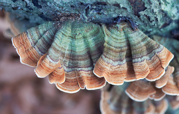 Coriolus versicolor is also known as Turkey Tail mushroom owing to its appearance resembling the tail feathers of the wild turkey. It is commonly found growing on stumps and logs of deciduous trees throughout North America, Asia and Europe. It is one of the most researched medicinal fungi and has been used as a staple medicine in traditional Asian and Native American medicine for centuries.