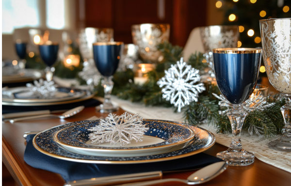 Tableware Accents: Metallic chargers, gold or silver flatware, and coloured glassware elevate your table’s elegance without overdoing it.